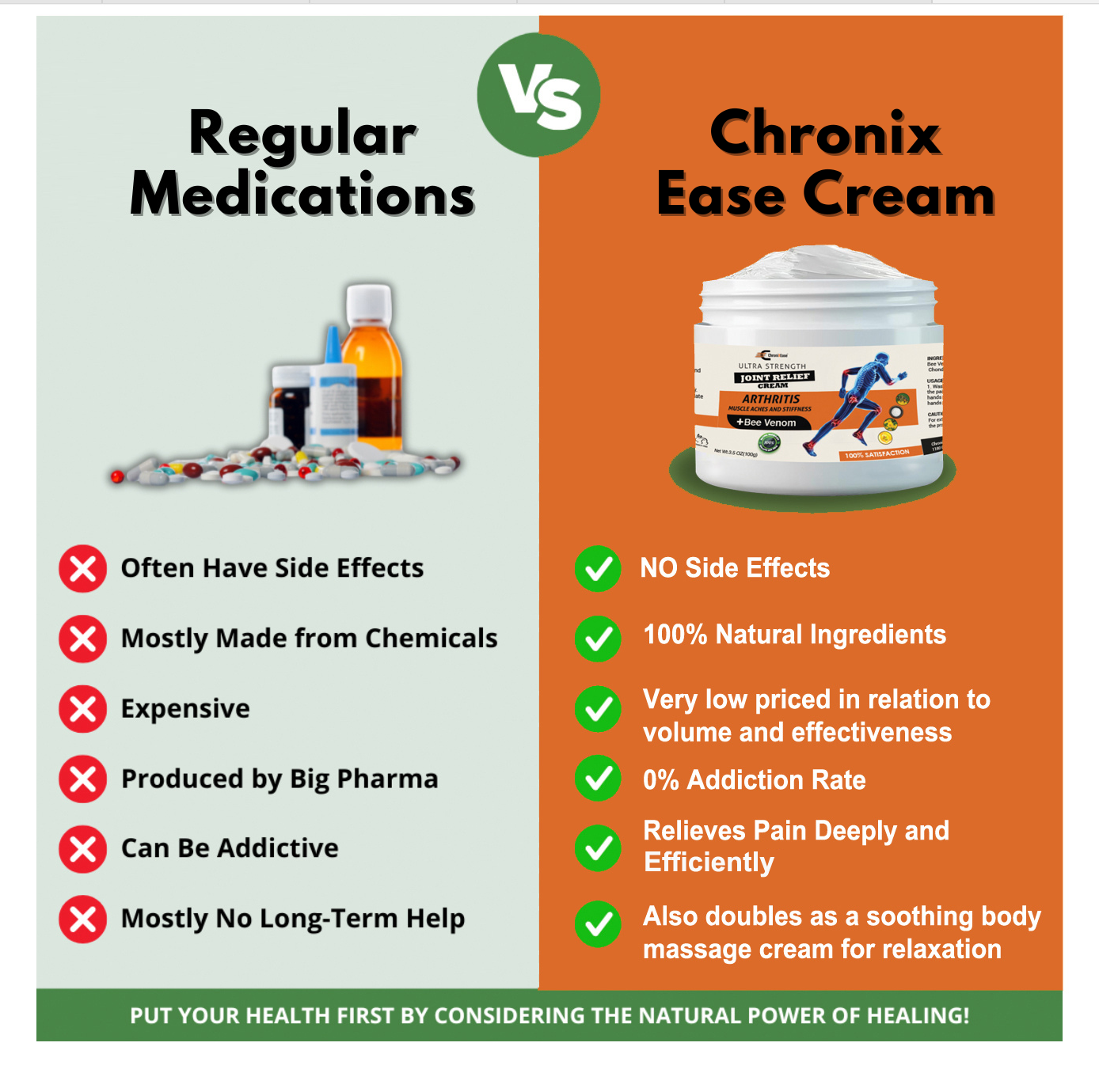 Our main ingredient, bee venom, which accounts for over 50% of our active ingredients, has been used for centuries by traditional healers and studied meticulously by modern researchers for its unique ability to manage pain and reduce inflammation. This is just one example of our commitment to providing products that are not only effective but also built on the safety and purity of natural ingredients! By choosing ChroniXEase ®, you’re not only choosing an effective and proven pain relief cream — you’re choosing to live a life where natural healing, wellness, and a proactive approach to managing joint and muscle pain are central to your future.