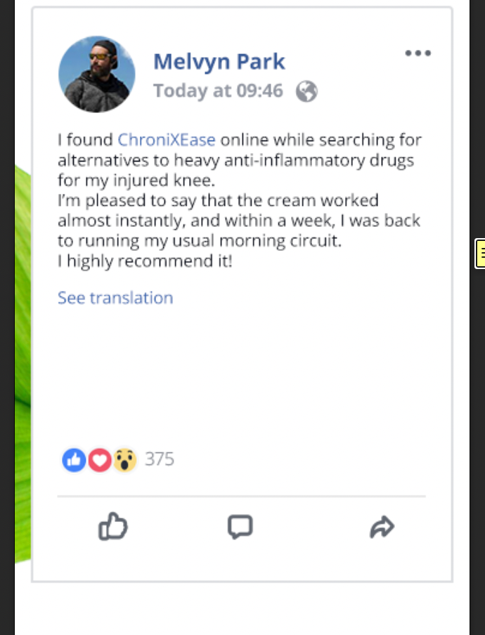 Some people feel instant relief from ChroniXEase ®, while others report feeling the effects of ChroniXEase ® within a few days of consistent use. However, it’s important to note that individual results may vary depending on the severity of your pain and your body's response to ChroniXEase ®.